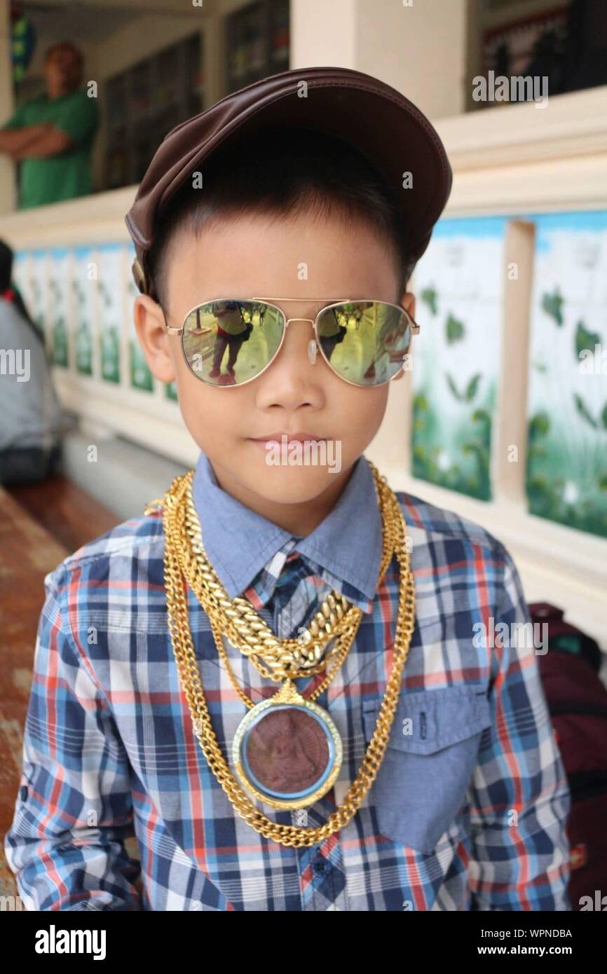 Close Up Portrait Of Boy Wearing Sunglasses And Gold Chains Stock Photo Alamy