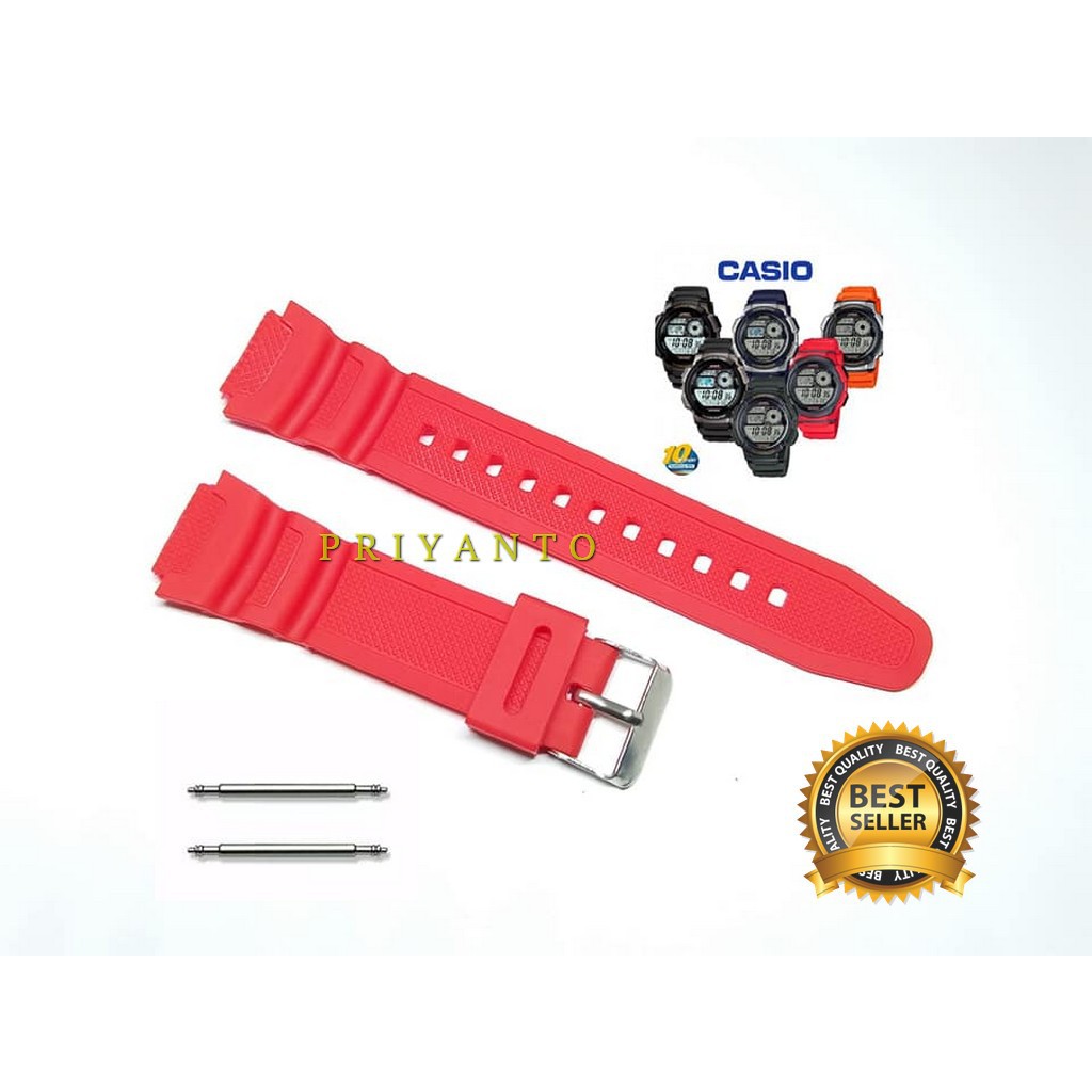 Strap Tali Jam Tangan Casio Watch Karet W S200 W S210 Merah Free Pen Shopee Indonesia