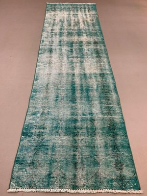 Distressed Turkish Narrow Runner Rug In Wool Overdyed Green For Sale At Pamono