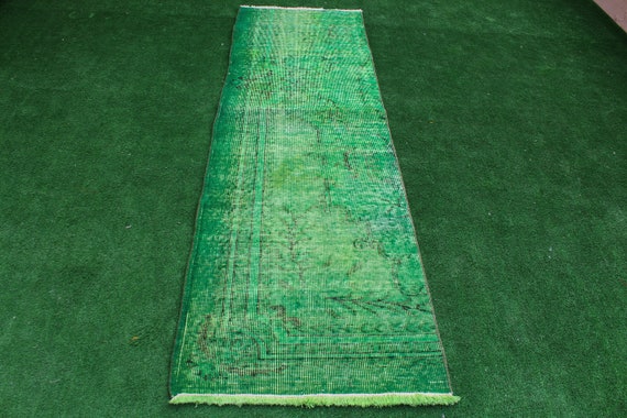 Green Rug Green Color Vintage Overdyed Handmade Turkish Runner Rug Green Overdyed Runner Rug From Turkey