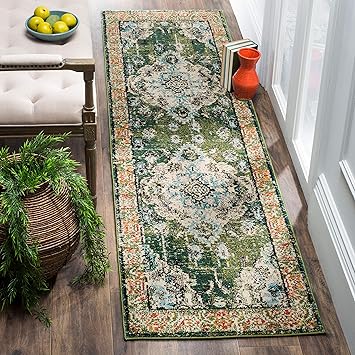 Amazon Com Safavieh Monaco Collection Mnc243f Boho Chic Medallion Distressed Non Shedding Stain Resistant Living Room Bedroom Runner 2 2 X 6 Forest Green Light Blue Furniture Decor